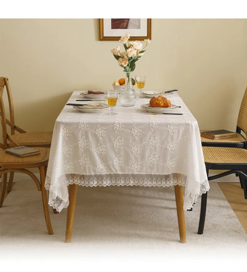 Rectangle Lace Tablecloth Vintage Embroidery Lace Table Cover
