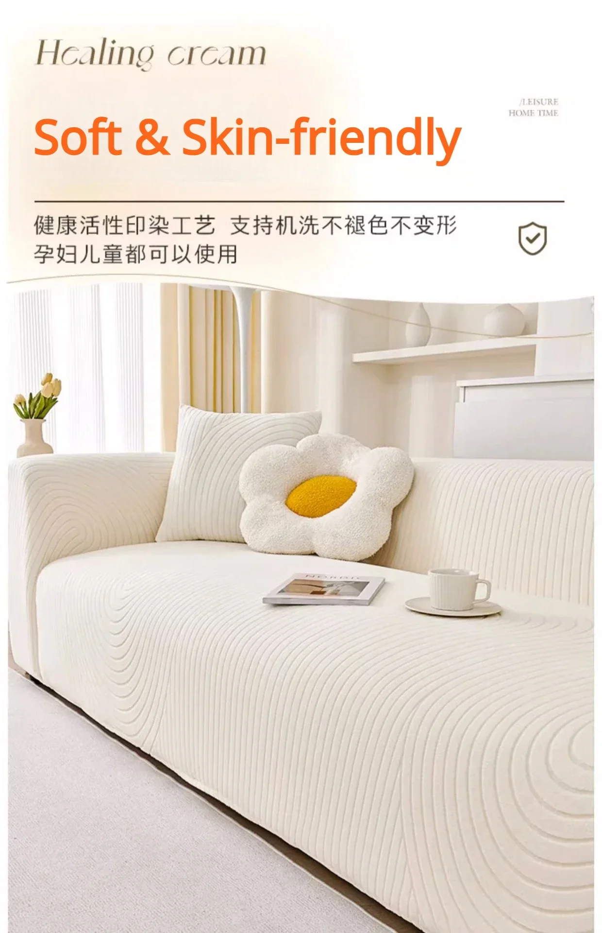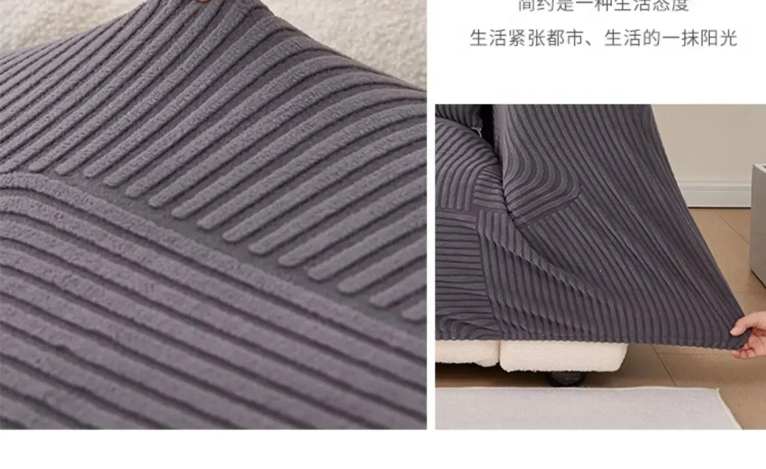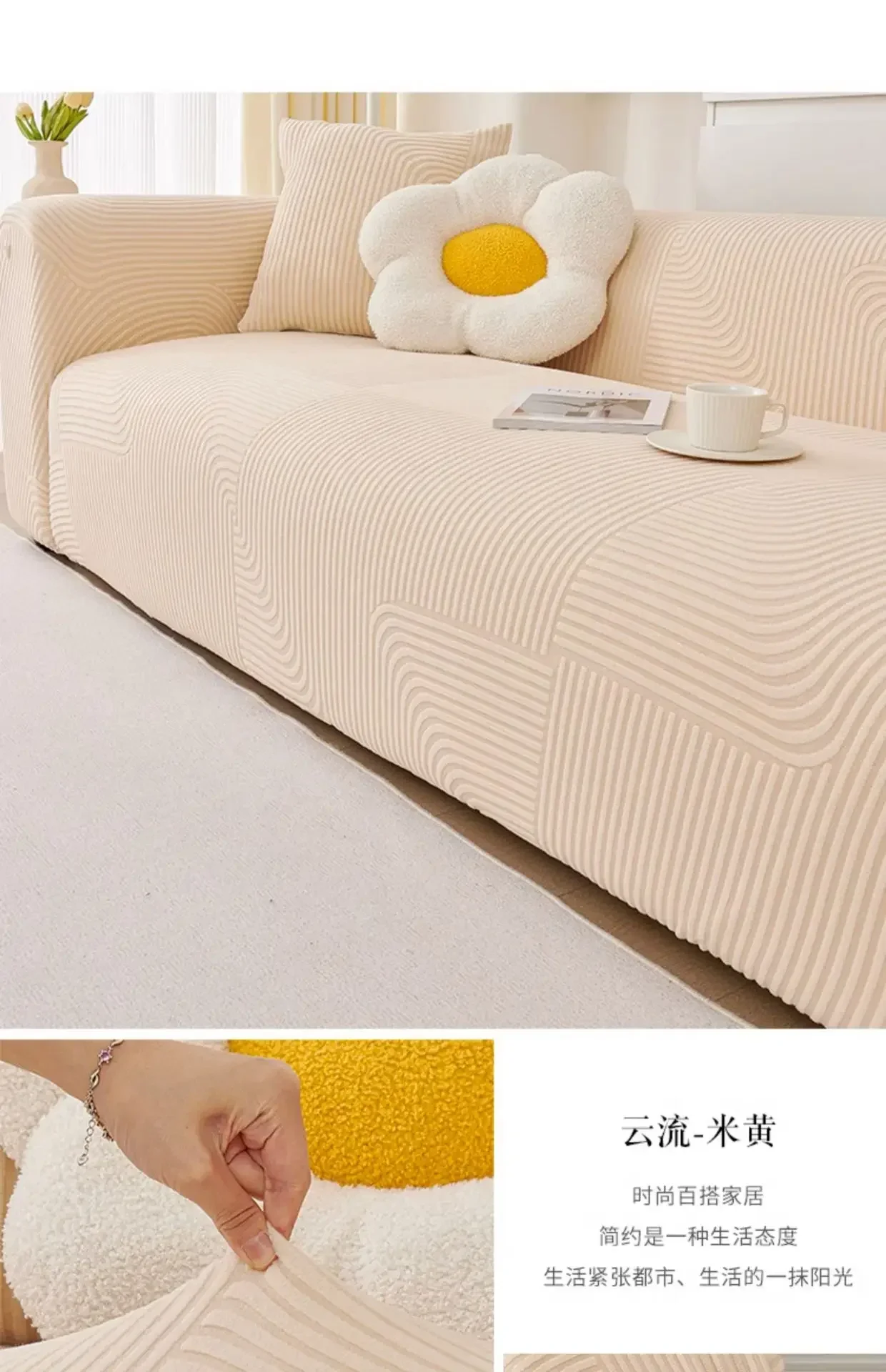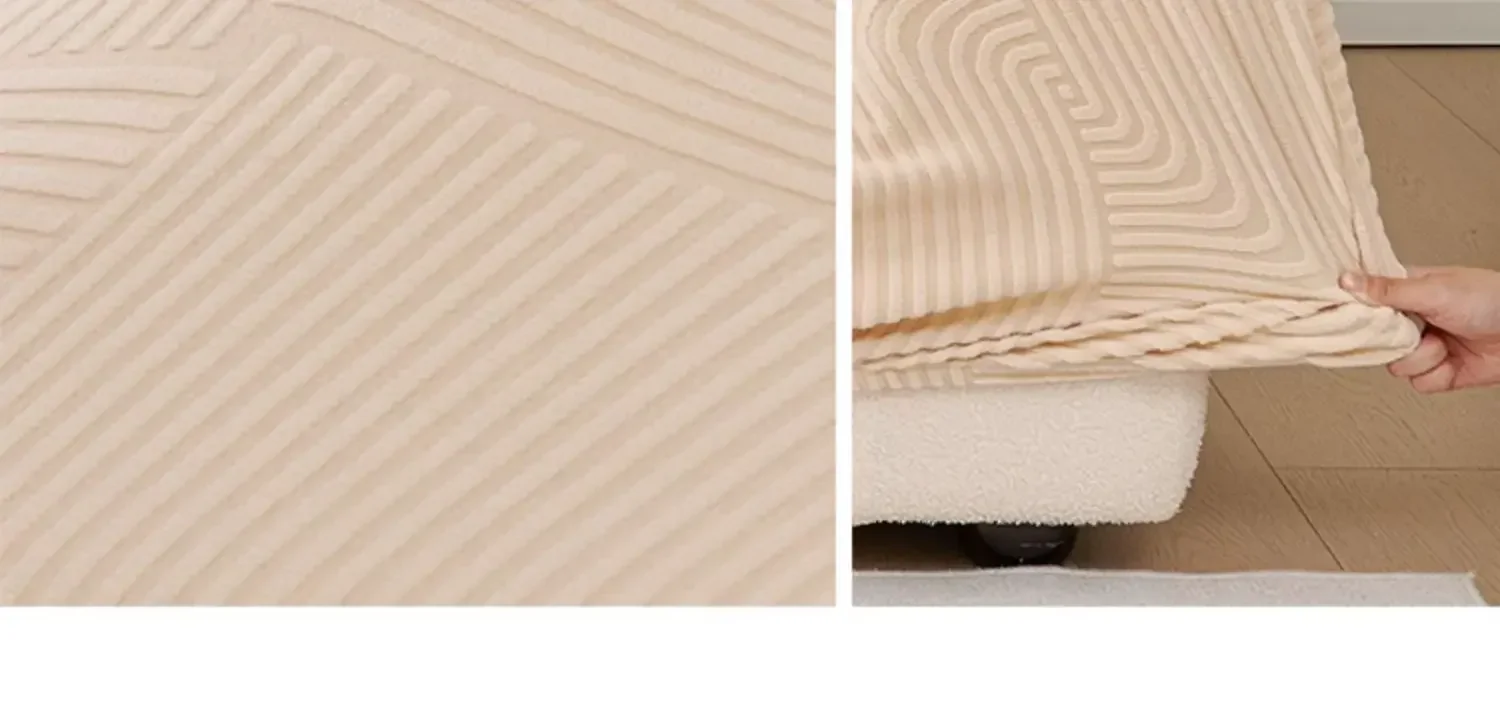 This stretch sofa slipcover features a modern geometric wave pattern with a textured finish. Made from soft, elastic fabric, it provides a snug fit and protects against spills, stains, and pet scratches. Its stylish design enhances any living space, making it perfect for refreshing old furniture or safeguarding new pieces.
