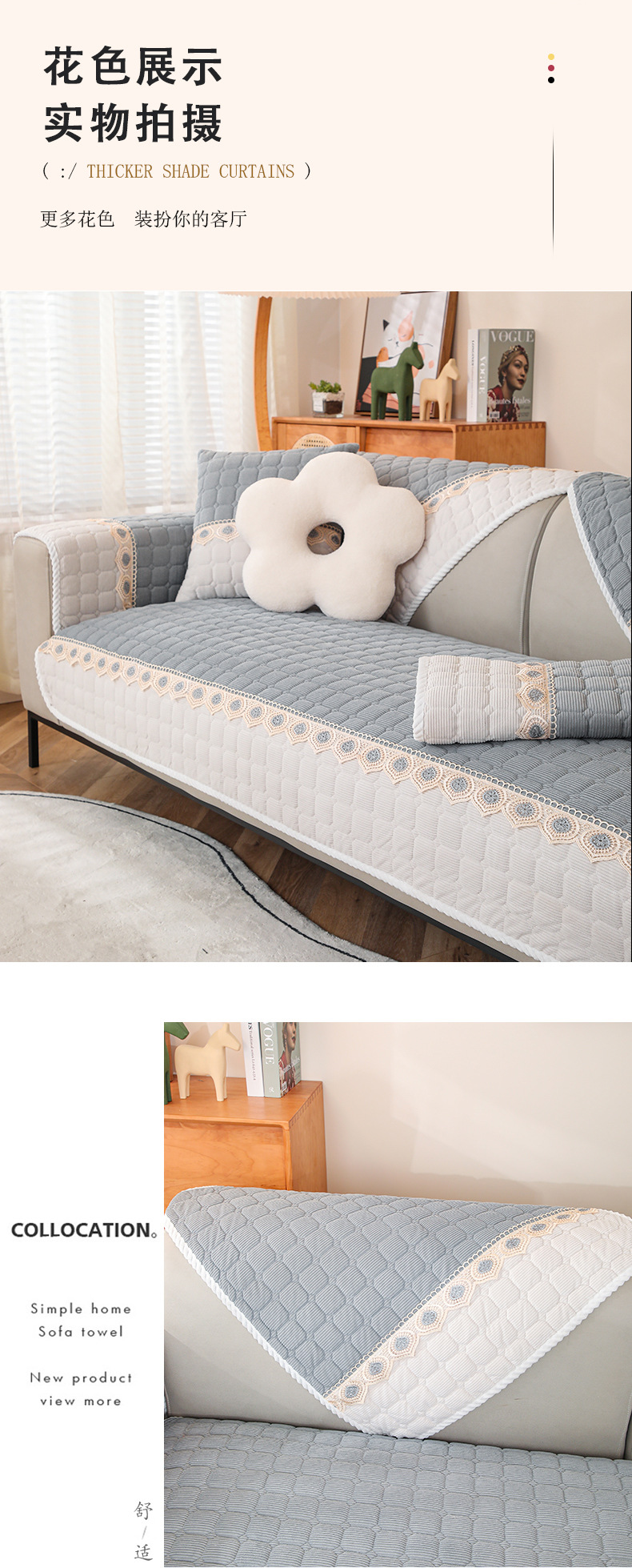 Non-Slip Sectional Couch Cover with Lace provides elegant protection for your sectional sofa, featuring a soft, durable fabric and chic lace trim. The silicone bead backing ensures it stays securely in place, making it ideal for homes with pets and kids.