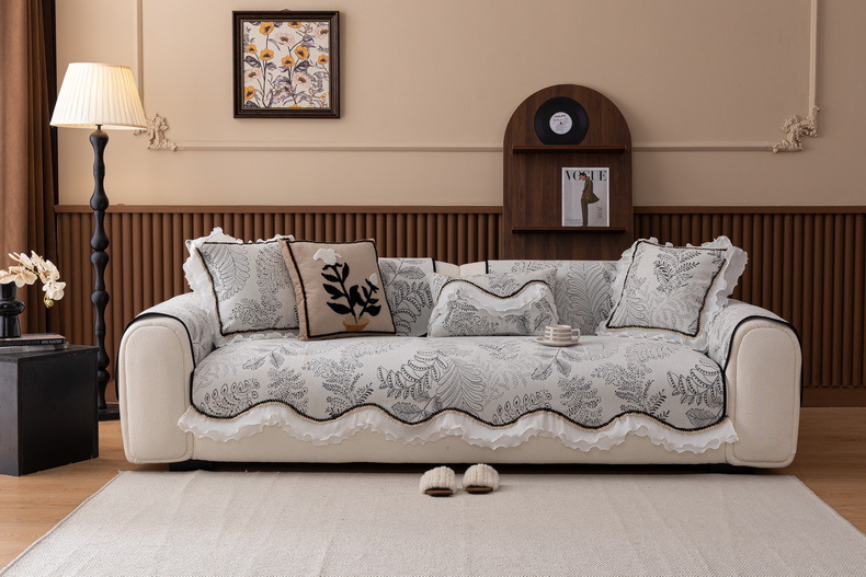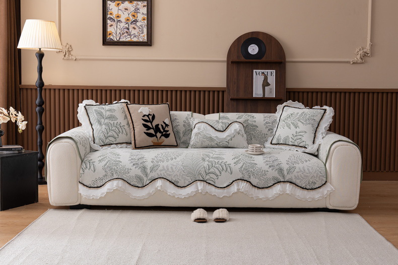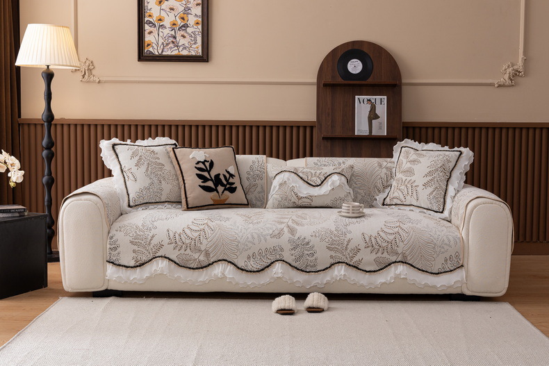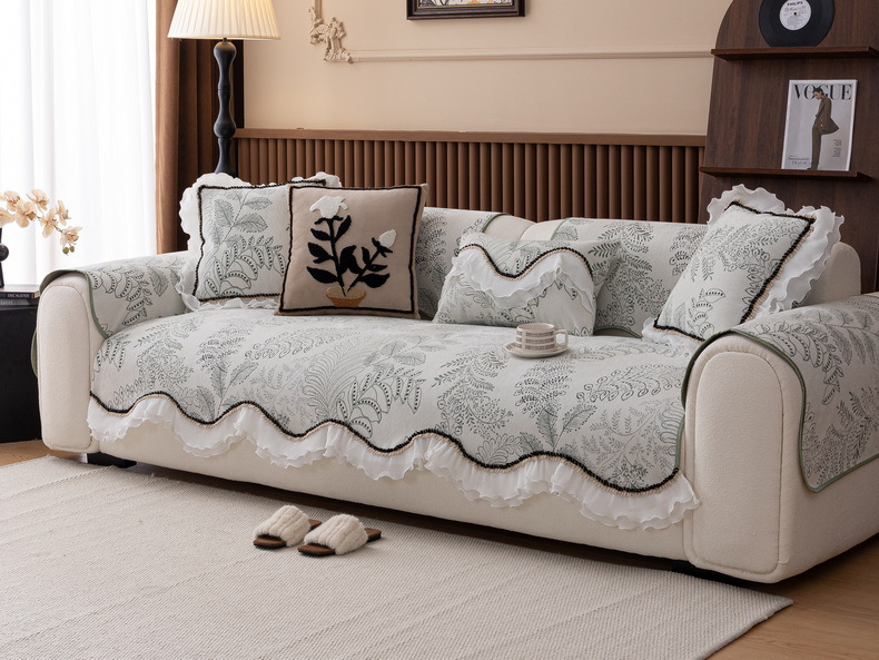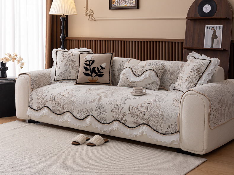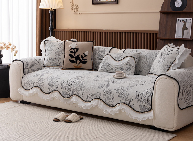 This scalloped-edge couch cover is made from premium chenille fabric featuring a soft, plush texture with a richly tufted surface that provides cozy comfort. With a clean, minimalist design, its elegant scalloped wave border adds subtle visual rhythm and sophistication, seamlessly blending with various interior styles. This versatile throw-style slipcover fits fabric or leather sofas of all sizes—including single, multi-seat, and sectional models—and has silicone dots on the reverse side for a secure, non-slip grip, ideal for homes with children or pets. Its non-fitted style allows easy placement and removal. For best care, wash gently and air dry to preserve softness and appearance.
