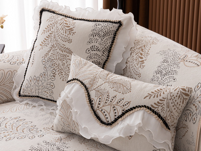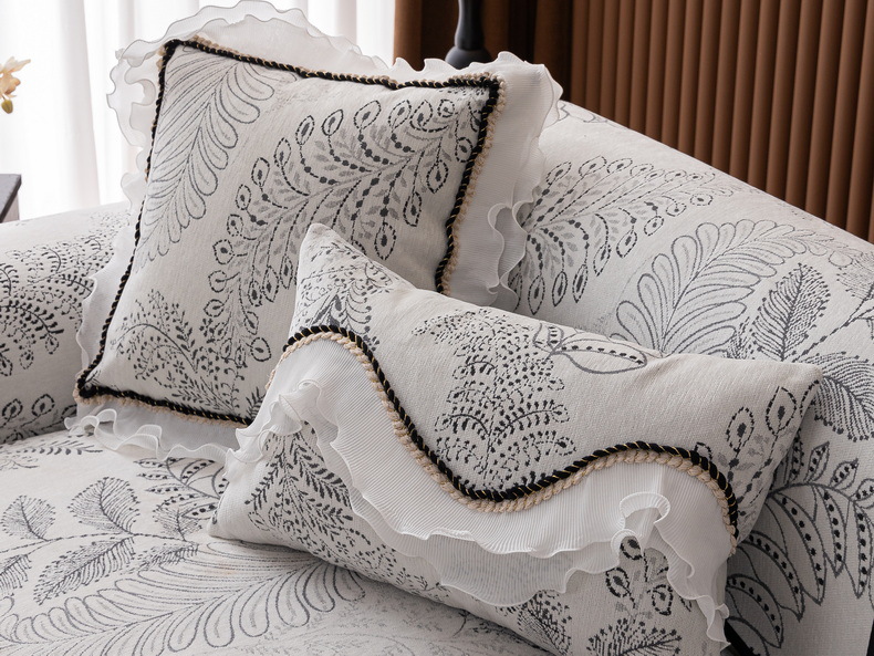 Durable Chenille Couch Cover with Scalloped Edge Non-Slip Modular Slipcover