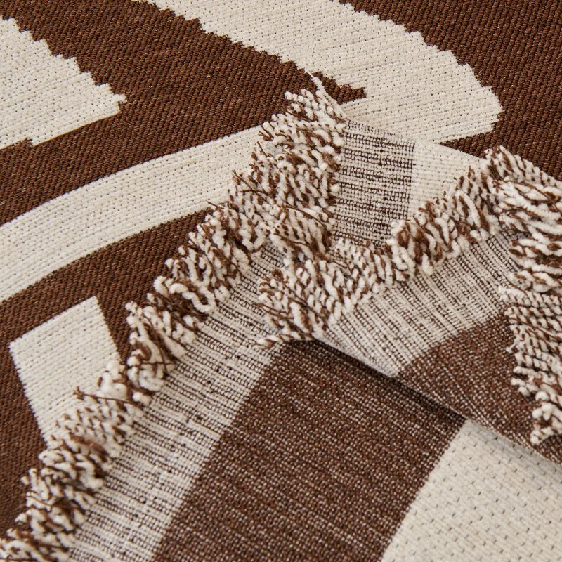 Bold geometric patterns and tassel edging complement modern interiors. Its one-piece design needs no installation—just drape and adjust. Machine washable and durable for everyday use.