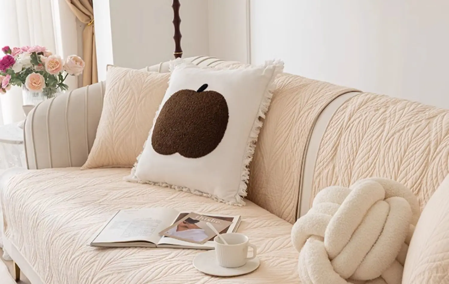 The reverse side is lined with dense non-slip silicone dots to keep each piece securely in place, even on leather or sleek fabric sofas. Sold in separate pieces for the seat, backrest, and armrests, it allows flexible sizing and easy replacement—ideal for busy households with kids or pets. Breathable, skin-friendly, and machine washable, this cover is the perfect blend of function and refined style.