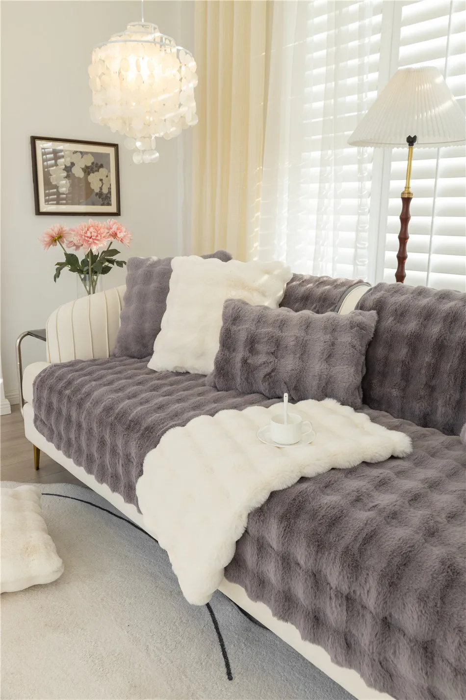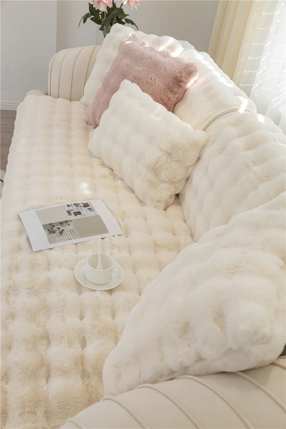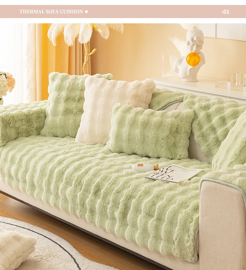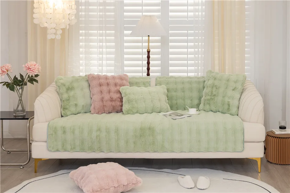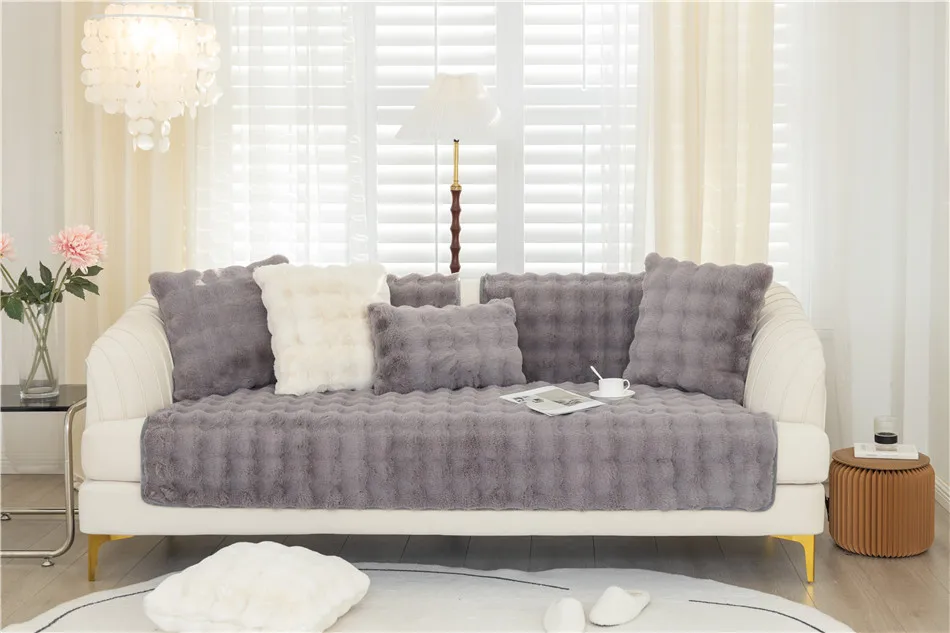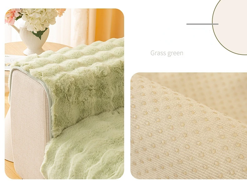 - High-quality materials: This sofa cover is made of faux rabbit fur fabrics, soft, skin-friendly and non-shedding (durable), comfortable to touch.