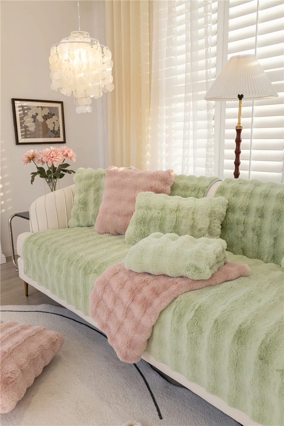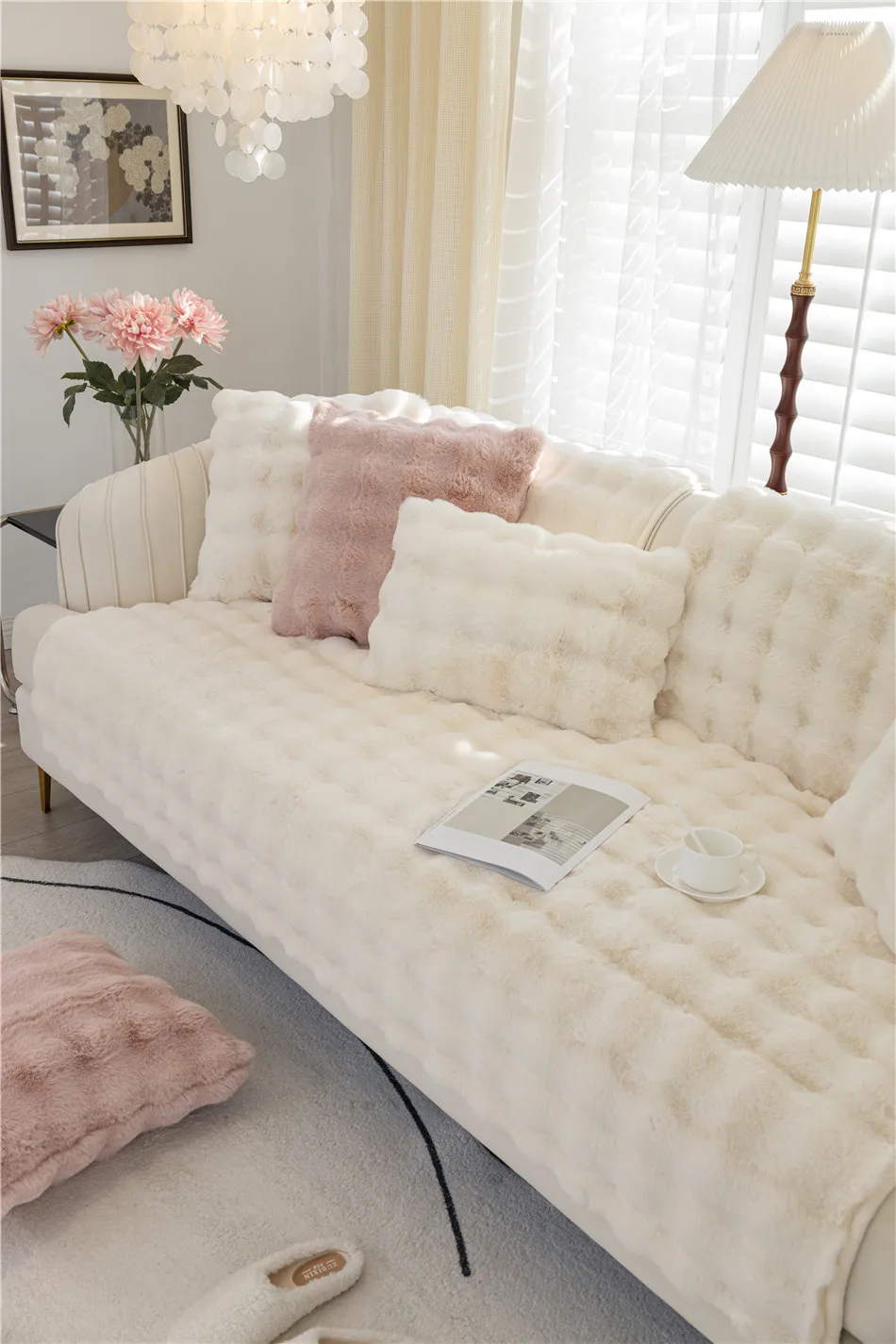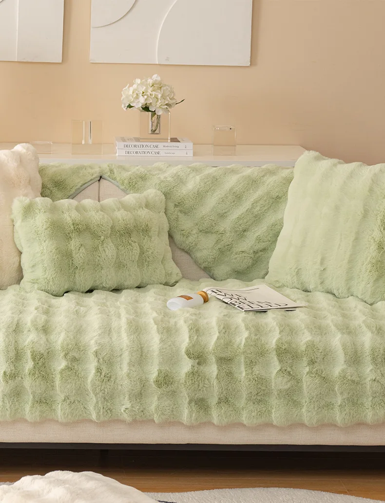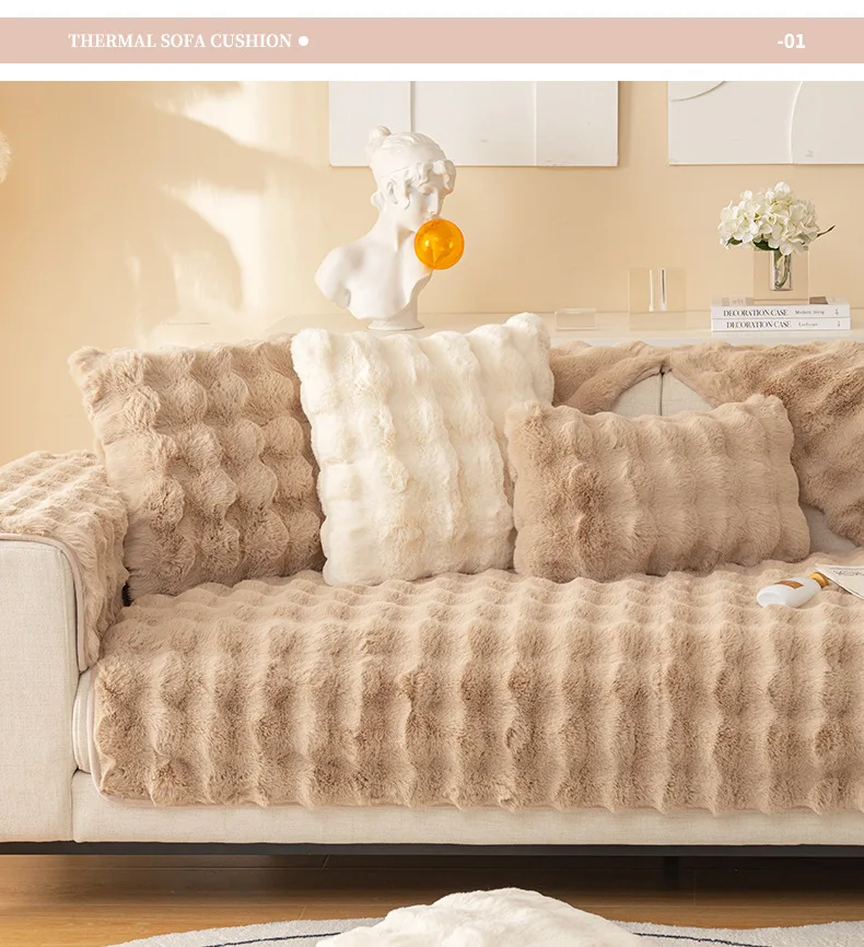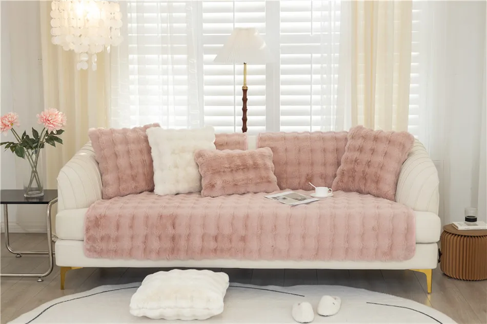 - High-quality materials: This sofa cover is made of faux rabbit fur fabrics, soft, skin-friendly and non-shedding (durable), comfortable to touch.