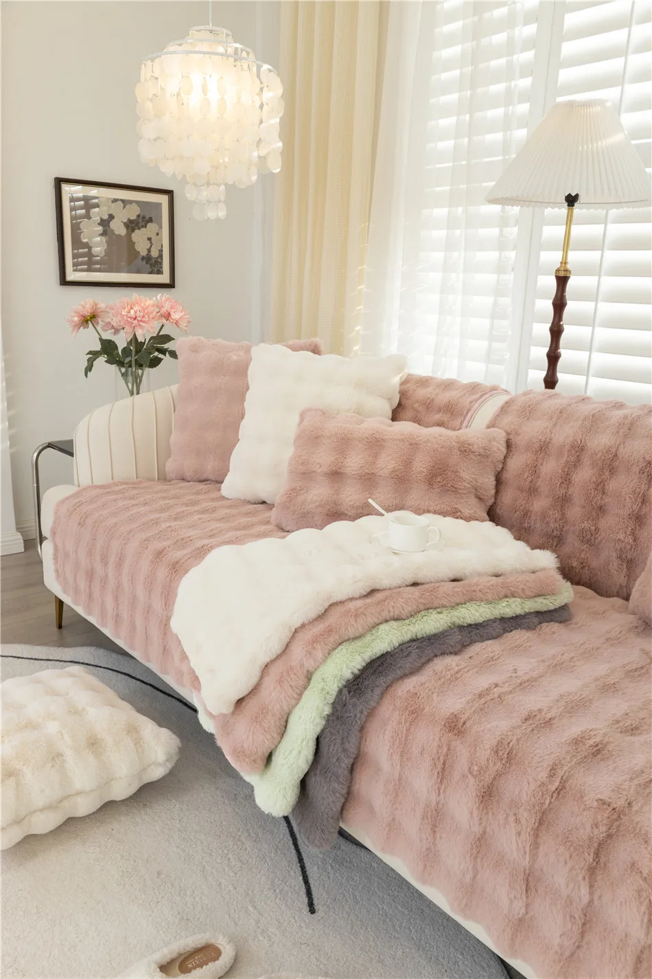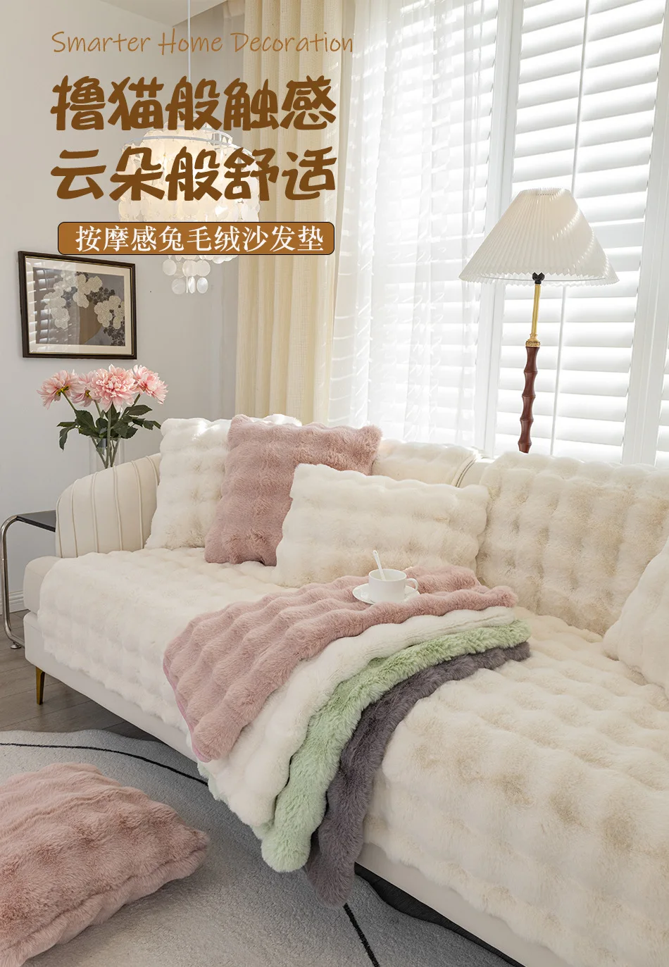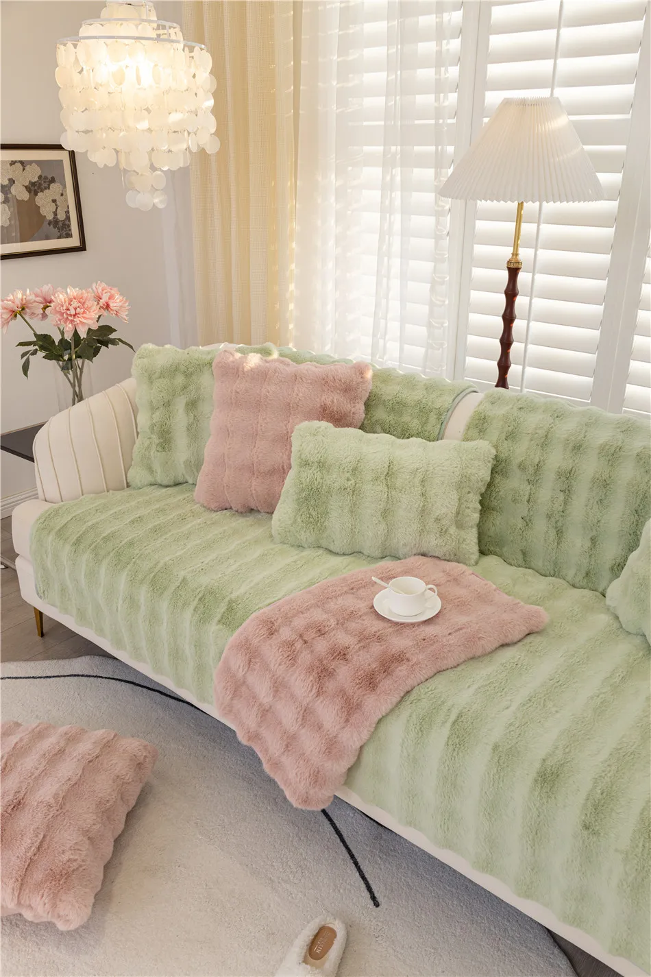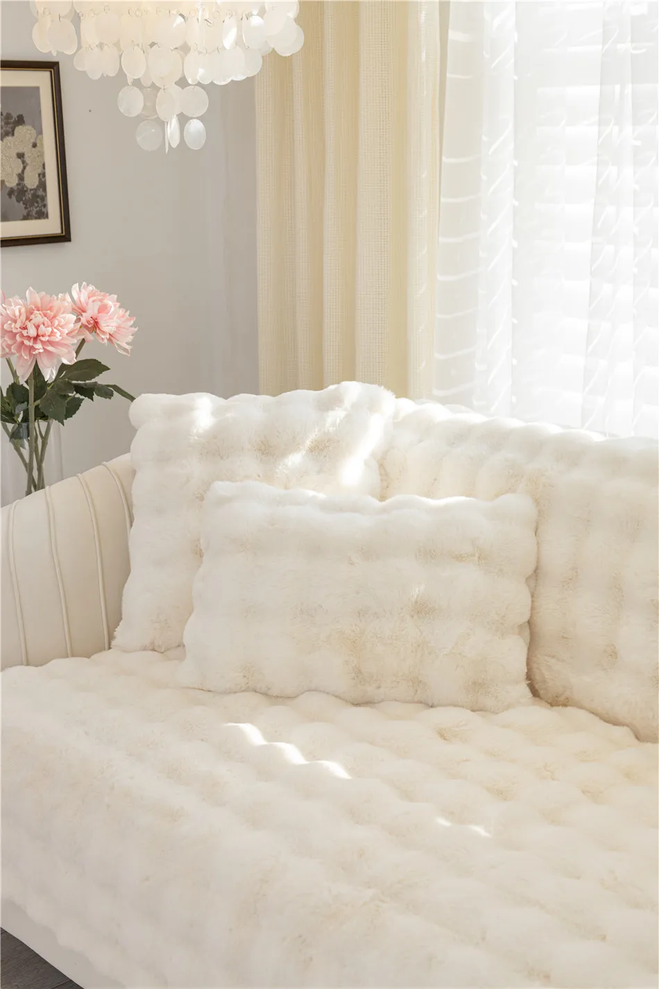 - High-quality materials: This sofa cover is made of faux rabbit fur fabrics, soft, skin-friendly and non-shedding (durable), comfortable to touch.