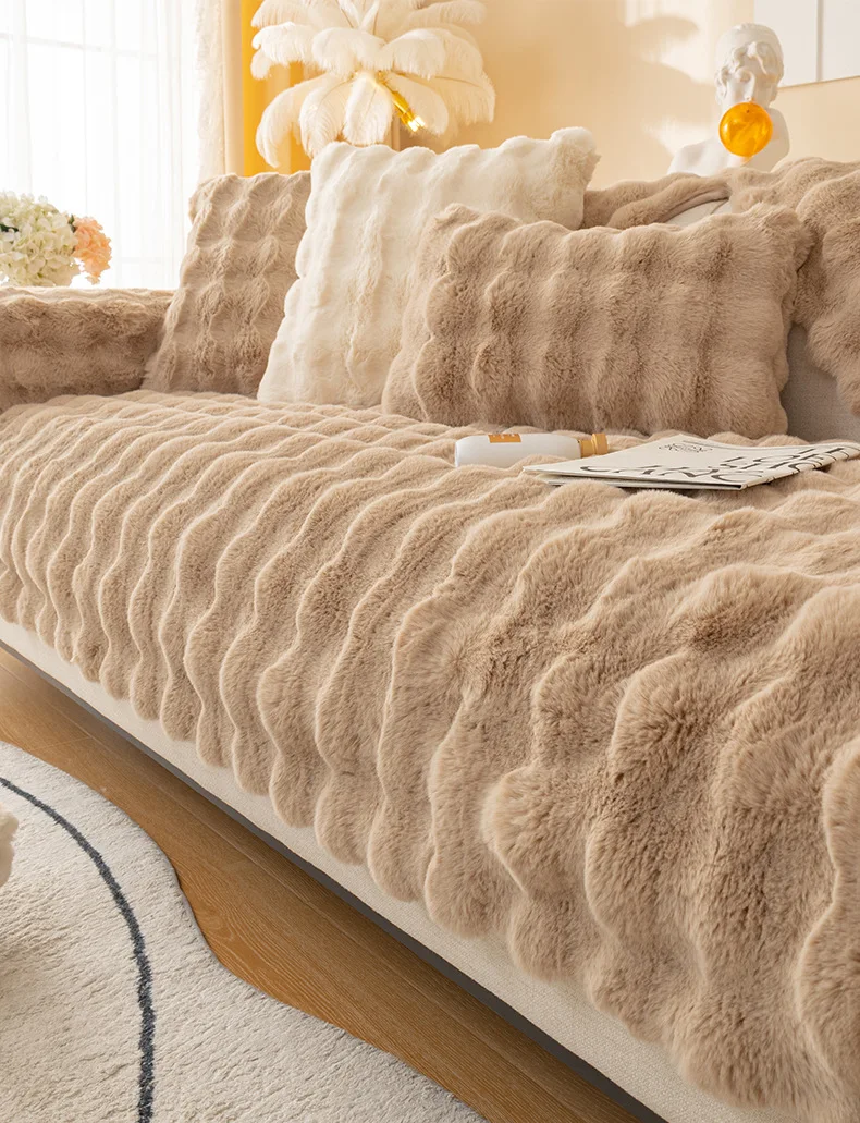 Wrap your sofa with the bestselling plush Slipcover Sofa Towel! Made of faux rabbit fur, it's luxuriously soft and warm, while its silicone particles on the back ensures it stays in place. Experience maximum comfort with a timeless style that will last!